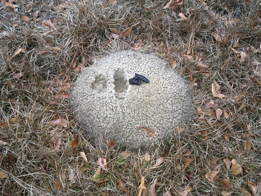 Casual Survey of Three Acres of Land Reveals 120 Fire Ant Colonies / Disrespectful wild animal disturbed and then crapped on an ant hill. Picture